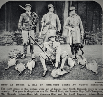 There is a remarkable photograph from the Tatler in 1936 showing Blair with his brother David and Hamish Pelham-Burn after hunting geese at Drem. All three had been boyhood chums in Nairn and later joined the Seaforth Highlanders